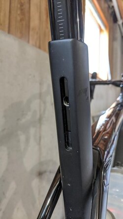 You could chop off some using a hacksaw or a pipe cutter.The bike as a proprietary seat mast that must be swapped to get the seat lower.