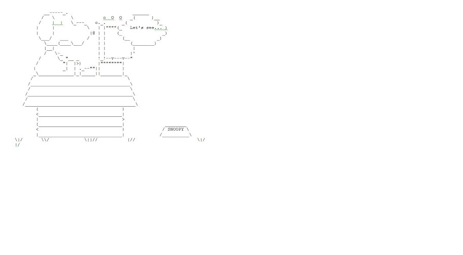 ilovebikes said:__-----_. ______ /... o O O _( )__ /....| | _---_ o._. _( )_ | | | |""""(_ Let's see... ) | | |@ | | (_ _) ___/ ___ / | | (__ _) ____(_______/ | | (________) |__| | | | / -_ | | |' / _ "__ _ !_!--v---v--" / "| |>) |""""""""| | _| | ._--""|| | ______________|_|_____||________|_ / /_____________________________________ / /_______________________________________ / /_________________________________________ { } <_______________________________| | > {_______________________________| ________ < } / SNOOPY |_______________________________| /__________|/ / ||// |// |/ |/